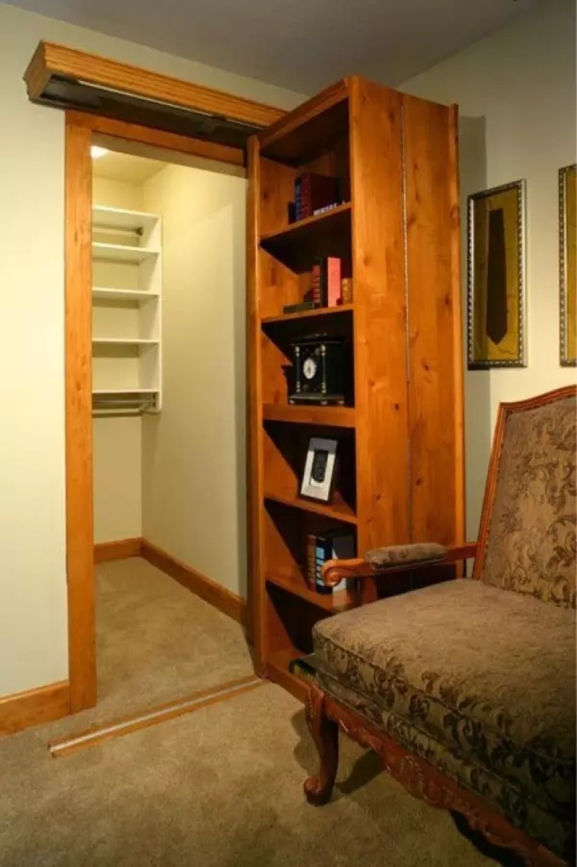 Многие прячут скрытые двери в шкафы-купе. Это делается для того, чтобы спрятать проход от всех, кто может им заинтересоваться.