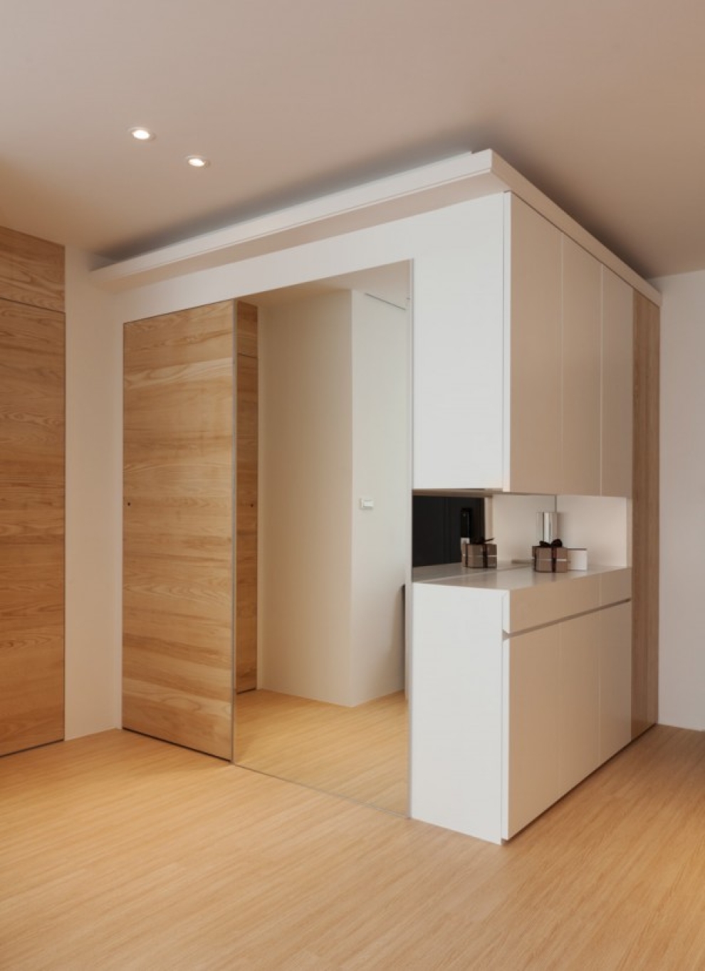 Выше вы можете увидеть чрезвычайно функциональный, гармоничный, компактный и актуальный дизайн маленькой квартиры маленькой квартиры-студии лофта.Он способен вместить практически все необходимые функциональные зоны на минимальном количестве свободного пространства. Конечно, нечасто можно встретить гостиную со встроенным домашним кабинетом, детским местом, прачечной, кухней. Все они смонтированы в одной стенке и снабжены дверцами, которые создают ровную прямую стену и защищают внутреннее пространство от пыли, экономя ваше время на уборку.