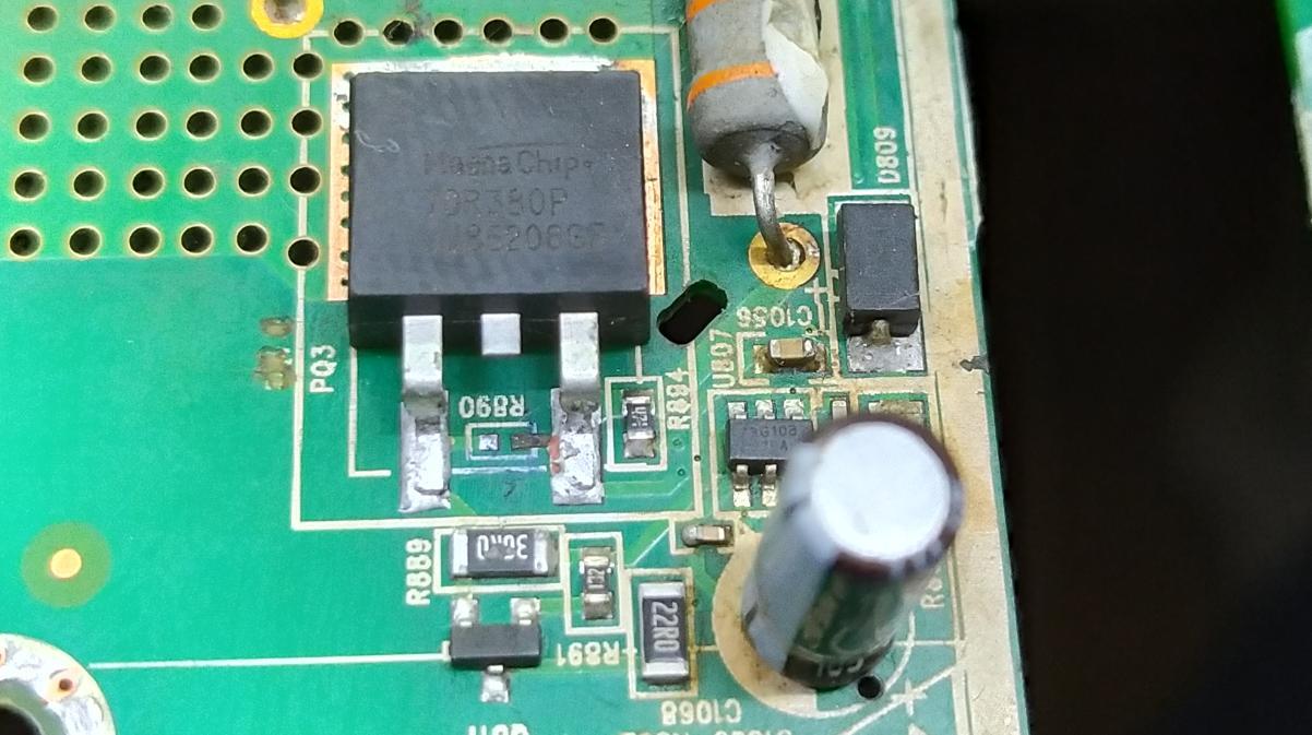 Внешний осмотр выявил три перегоревших SMD-резистора. Один в цепи затвора полевого транзистора 4N90C на 47 Ом (маркировка – 470), и два на 2,4 Ом (2R4) – включенных параллельно – в цепи истока того же транзистора.