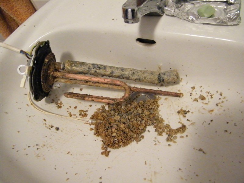 Работа водонагревателя накопительного типа без магниевого анода. Соли тяжелых металлов осаждаются на тэн и поверхность внутренней колбы, тем самым приводят к их разрушению!!!
