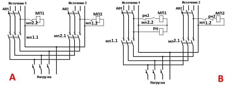 Только особо следите за правильной фазировкой АВС. Она должна совпадать на вводе-1 с вводом-2. Иначе 3-х фазные двигатели после переключения будут крутиться в обратную сторону.