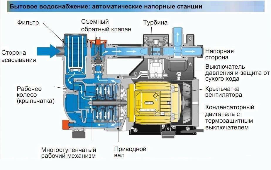 Насосная станция. Есть вихревые или центробежные установки, которые могут использоваться в быту. Все они отличаются между собой своей мощностью.