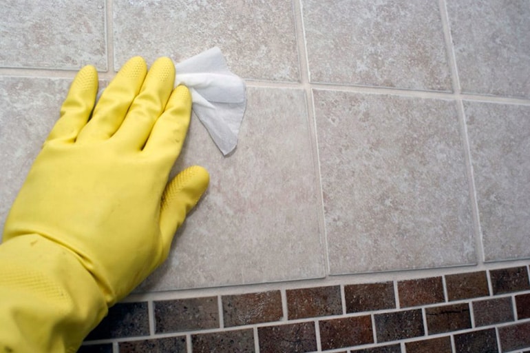 - Затем протереть плитку тряпкой, чтобы убрать остатки.