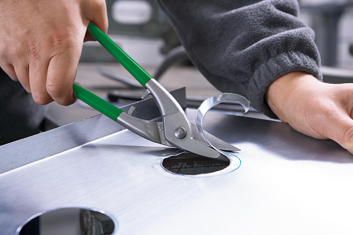 Ручными ножницами можно разрезать материал, толщиной до 3 мм. Они имеют несколько видов резцов по металлу:
