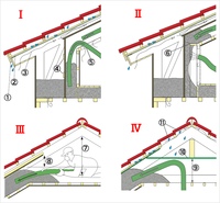 Какую бы форму ни принимала изоляция, важно, чтобы между лицевой стороной изоляции и кровельным покрытием оставался воздушный зазор не менее 5 см. Чтобы избежать проблем с конденсацией, это пространство должно хорошо вентилироваться, поэтому вентиляционные отверстия могут быть установлены на крыше, на карнизе и коньке.