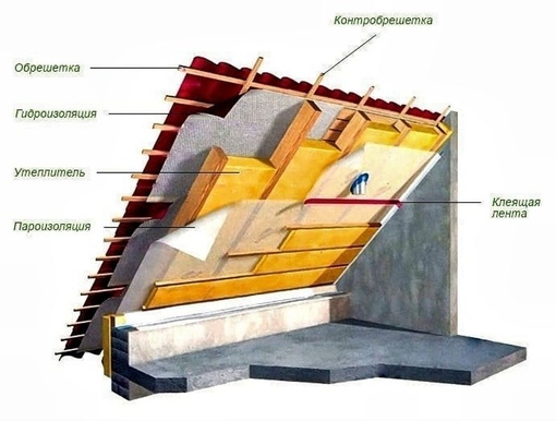 , а также ее современные варианты. Она продается в рулонах, режется на куски необходимой ширины и укладывается враспор между стропилами. Обращаем внимание! Стекловату не стоит использовать на крутых скатах, он со временем может съехать вниз под собственным весом.