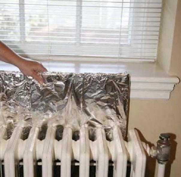 Частные случаи размещения отопительной батареи на стене не позволяют осуществить монтаж полноценного экрана, отражающего тепло. Выходом из такой ситуации будет крепление на стене алюминиевой фольги, своей блестящей поверхностью отлично справляющейся с отражением тепла. Один лист такого материала, размещенный на стандартной кирпичной стене (если ее толщина составляет 51 сантиметр), позволит снизить потерю теплоотдачи батареи до 35 процентов.