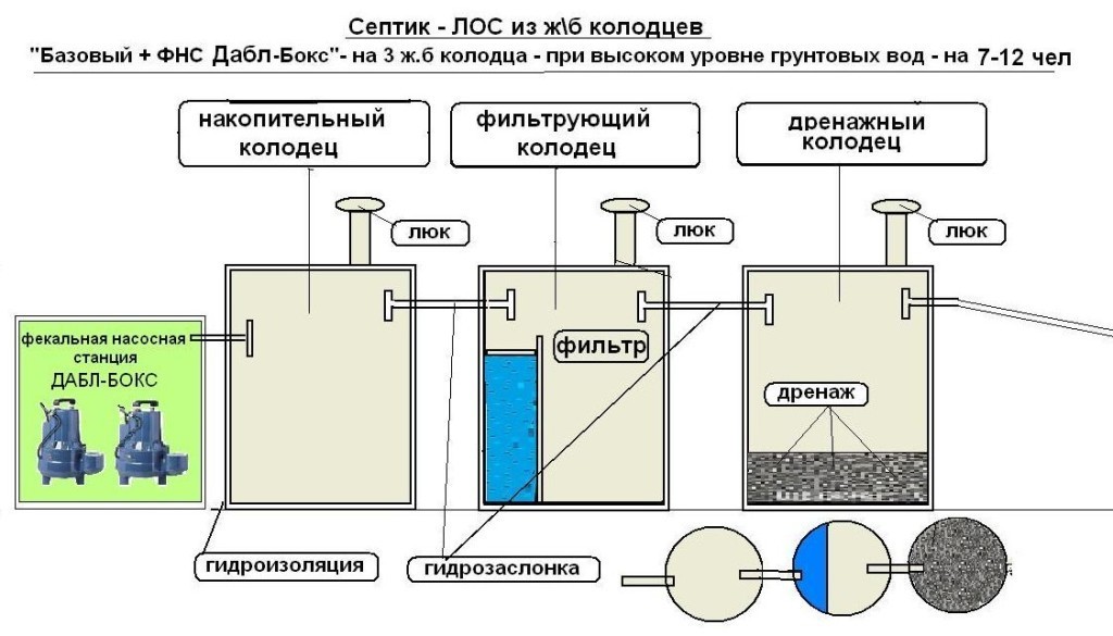 Иногда камера имеет возможность функционировать в качестве насосного колодца. Данную конструкцию можно дополнить дренажным насосом для отвода воды из септика.