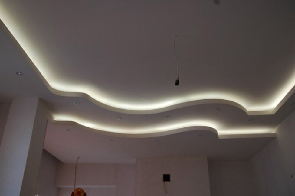 Что же касается цены, то стоимость любой потолочной конструкции зависит от выбранного материала, от особенностей и размеров помещения, а при гипсокартоне от сложности уровневой конструкции, габаритов комнаты.