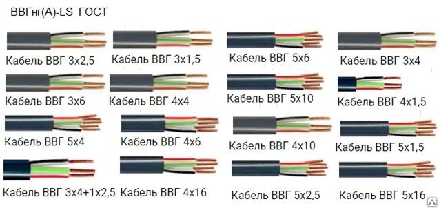 Аббревиатуры: ВВГ, АВВГ, ВВГнг, АВВГнг, ВВГнг-LS, АВВГнг-LS, ВБбШв, АВБбШв, ВБбШнг, АВБбШнг, ВБбШнг-LS, АВБбШнг-LS