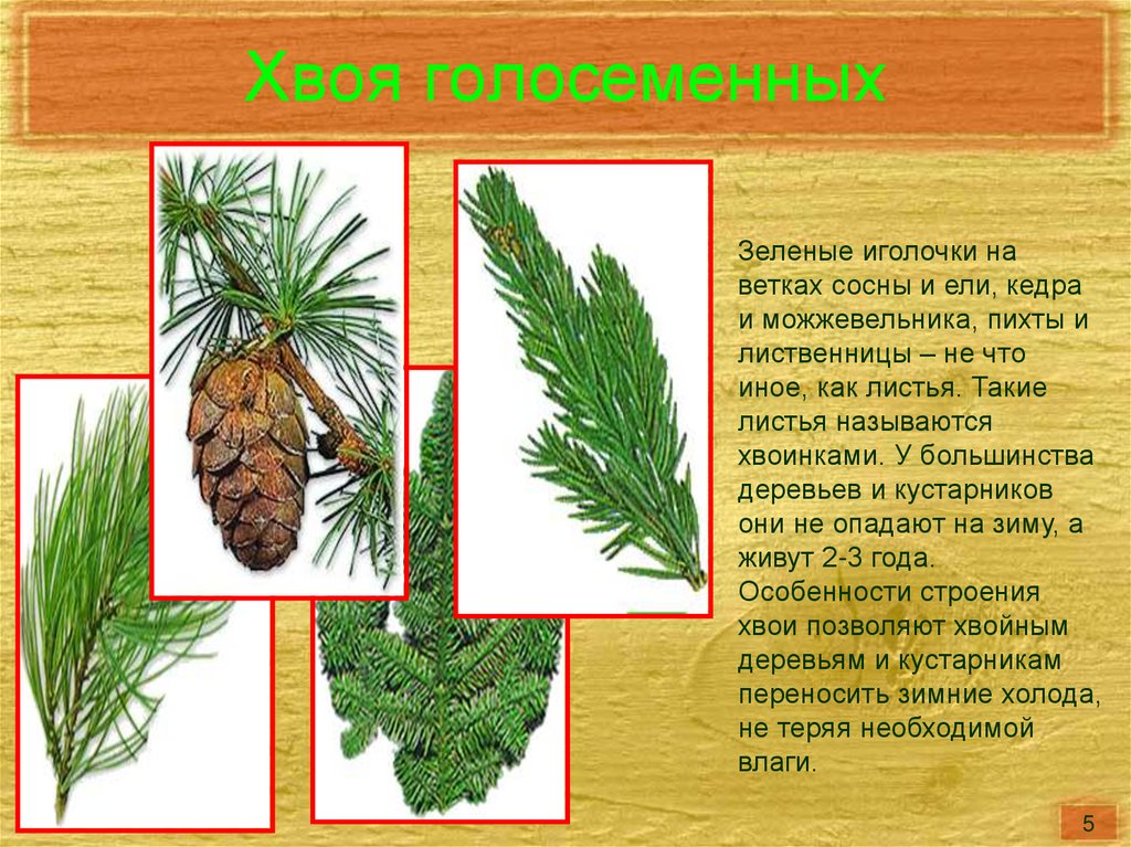 Именно по количеству иголок в пучке и цвету хвои можно отличить один вид сосны от другого. В зависимости от количества игл сосны относят к двум — трем — пятихвойным. Жизненные формы растений из рода Сосна, семейства Сосновые — это:- деревья