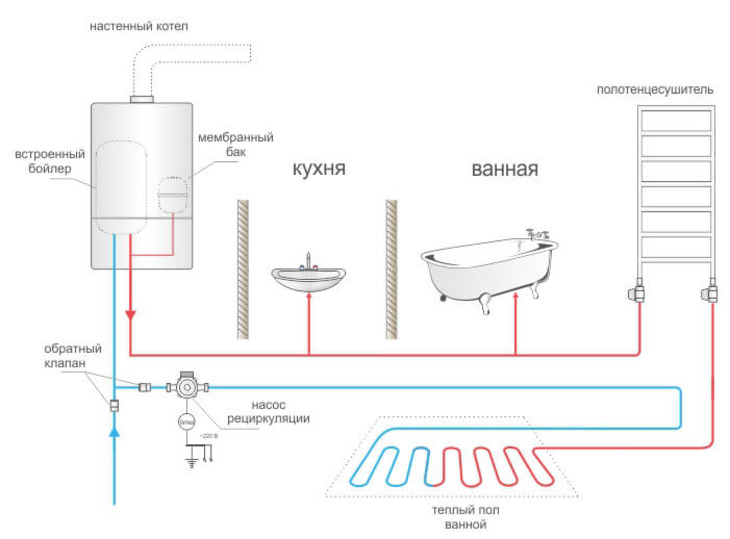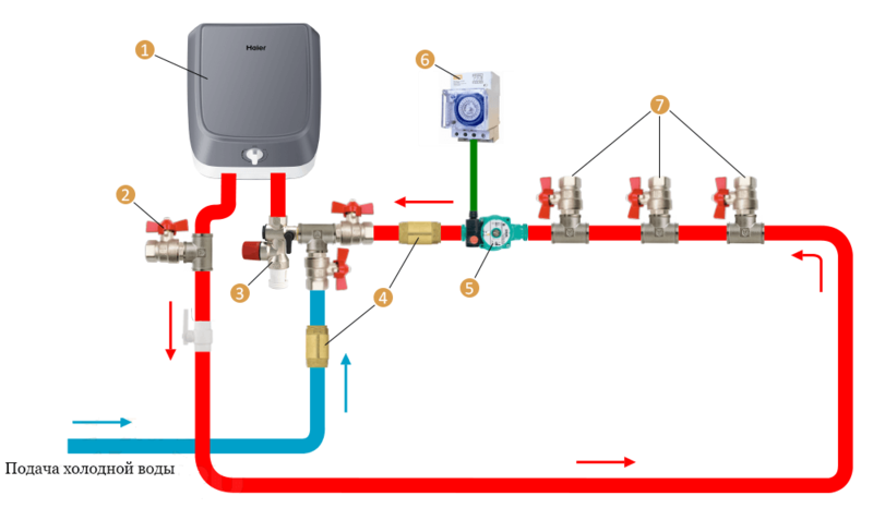 9002 труба меньшего размера со встроенным насосом подключается к точке, близкой к самому дальнему приспособлению, и к точке, близкой к водонагревателю.Насос может работать непрерывно или с перерывами, обеспечивая циркуляцию достаточного количества воды, чтобы поддерживать падение температуры в трубопроводе при низком или нулевом потреблении в приемлемых пределах.