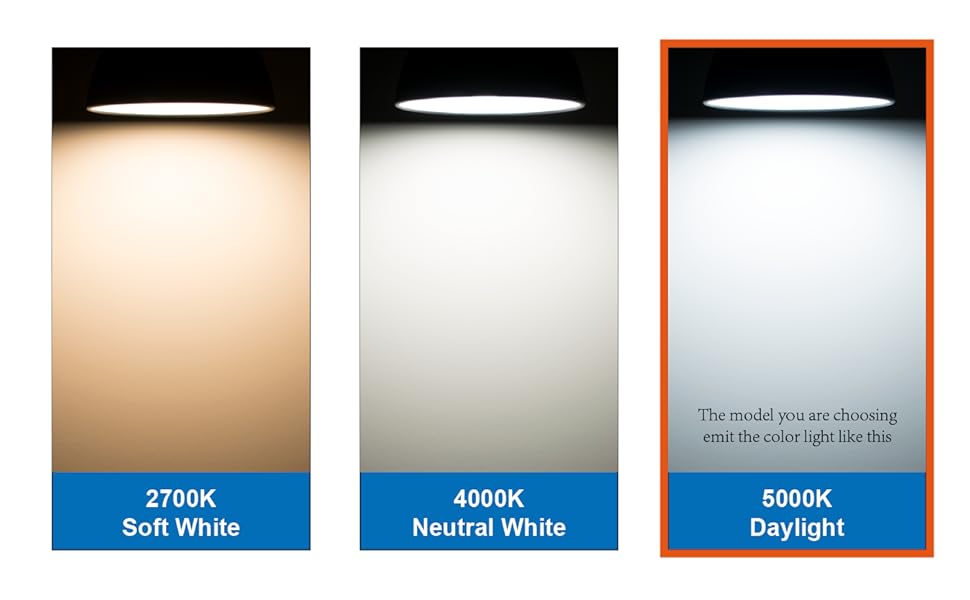 Из вышеуказанного диапазона 2700K-6500K мы описываем лампочки по одной из трех цветовых температур: теплый белый, естественный белый и холодный белый (или дневной свет).