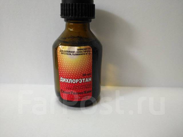 Клей дихлорэтан для оргстекла, полистирола и др. пластмассы. Также применяется в качестве растворителя.