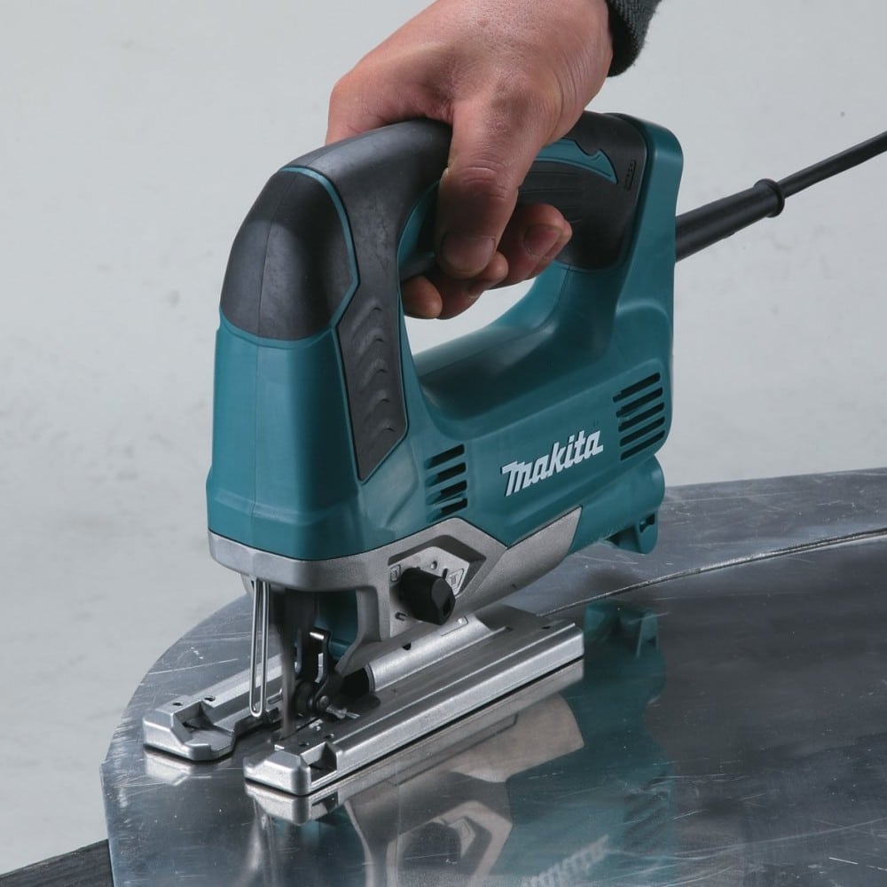 Вполне приличный вариант для выполнения бюджетного пиления по прямой или фигурной траектории. Лобзик достаточно крепкий, с удобной прорезиненной ручкой и мощным двигателем с двойной обмоткой. Продается в коробке с пильным полотном, шестигранником, параллельным упором и документацией.