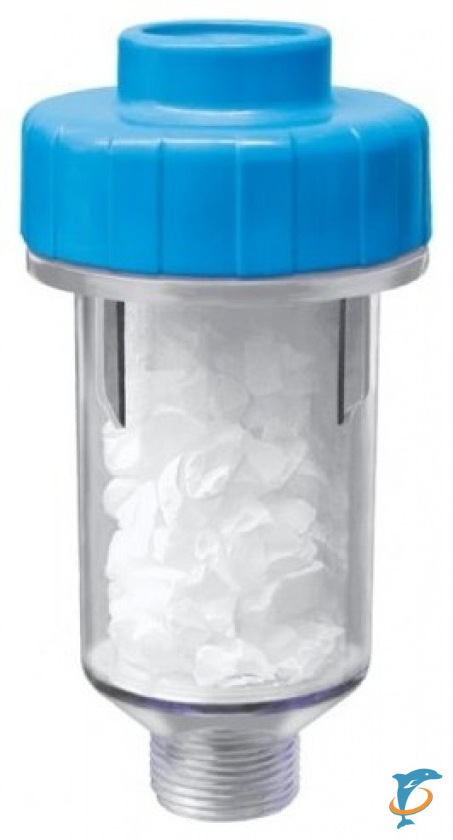 Это фильтр, который как раз предназначен для умягчения воды. Если вы сталкивались с проблемой жестких махровых полотенец после стирки, то данный фильтр способен снизить этот эффект. Представляет он из себя колбу, в которой содержится полифосфат натрия – вещество похожее на соль. Проходя через этот фильтр, вещества, которые образуют накипь, обволакиваются молекулами полифосфата и во время процесса нагревания не образуют накипи.