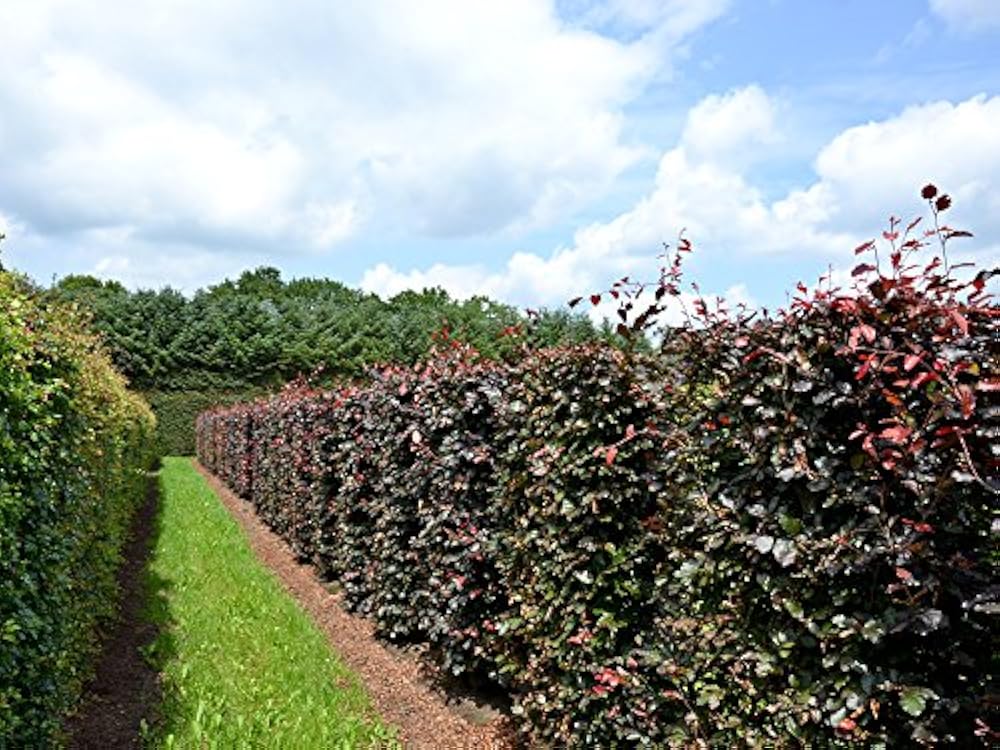 Преимущества: Листья как у зеленого букового леса (F.sylvatica) и ее красноватая разновидность (F. sylvatica f. Purpurea, на фото) долго остаются на ветвях, так что живая изгородь из этого растения и зимой может похвастаться относительной плотностью. Отлично переносит обрезку и притенение.