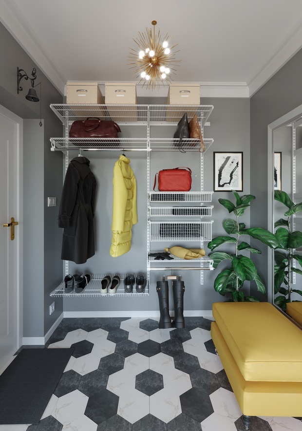 - Сетчатые корзины и полки обеспечивают хорошую вентиляцию, одежда не приобретает посторонних и специфических запахов. Также благодаря сетчатой структуре системы в гардеробную проникает больше света.