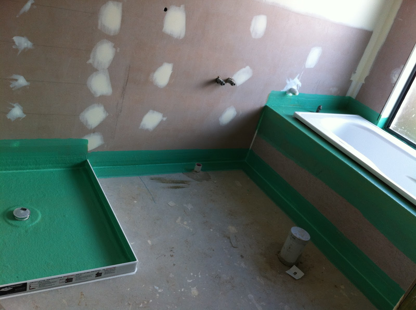 Мембрана Kerdi — поскольку мы расширили душевую кабину с помощью скамейки, и поскольку мы обернули мембрану вокруг передней части двух стен, мы решили заказать второй рулон мембраны
