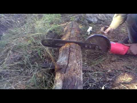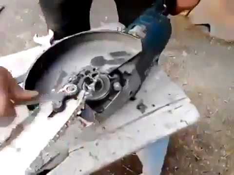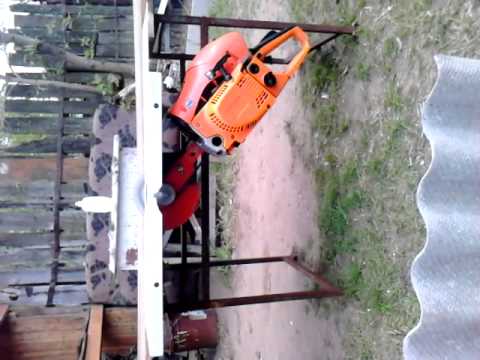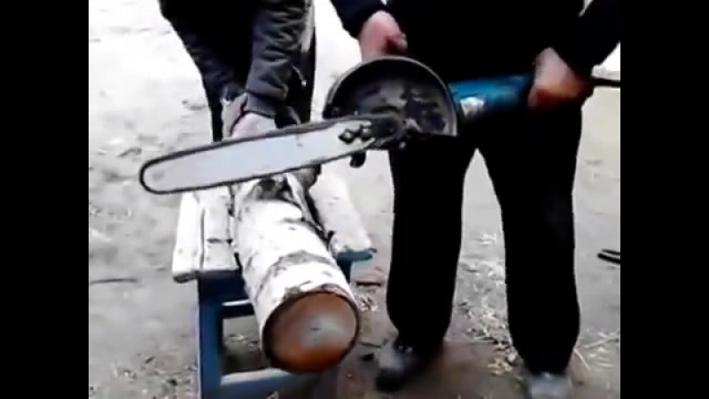 Вот попытка разрезать брус. Диск не успело заклинить, но обрезок деревянной заготовки улетел с хорошей скоростью.