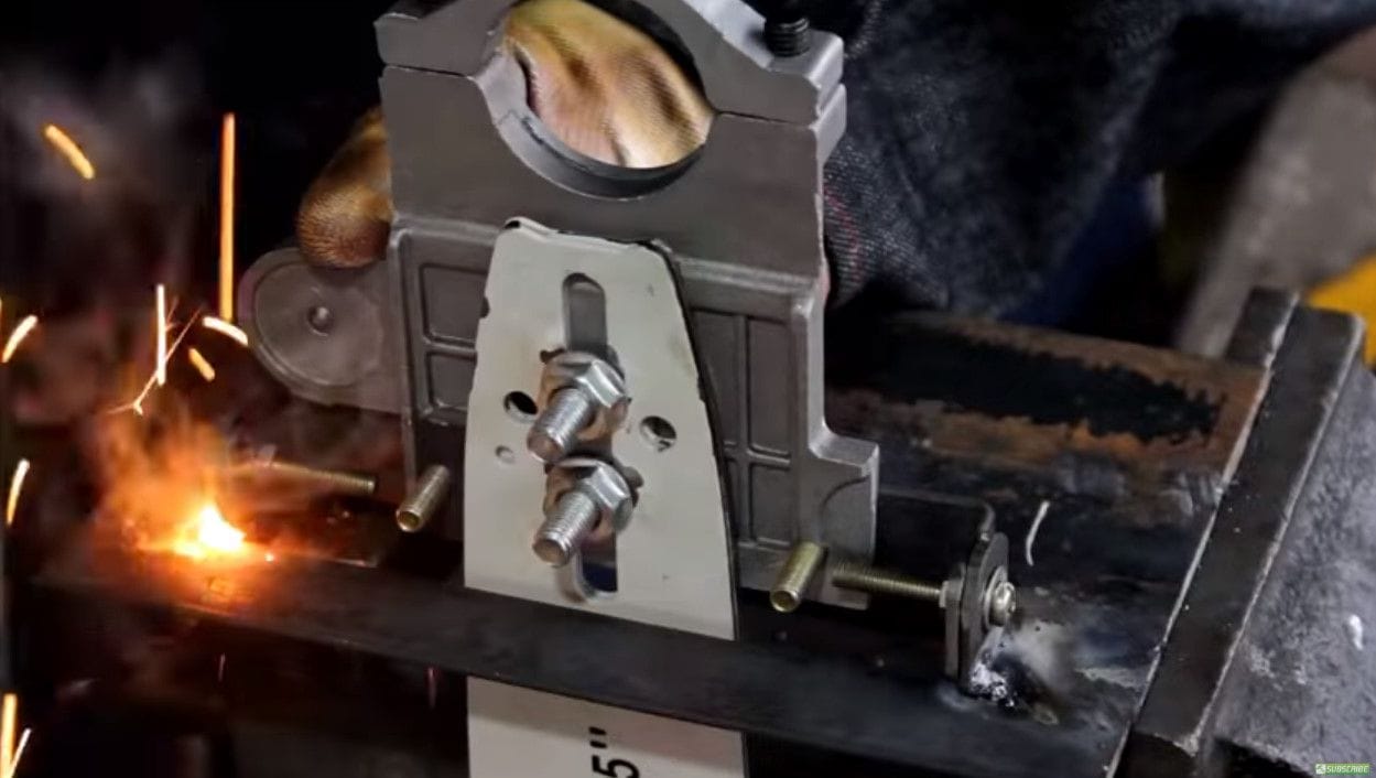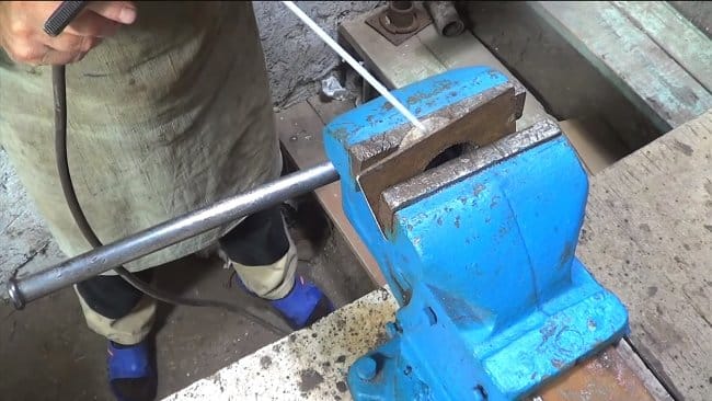 Отметил маркером место, где будут начинаться спуски, и зафиксировал ручными тисками.