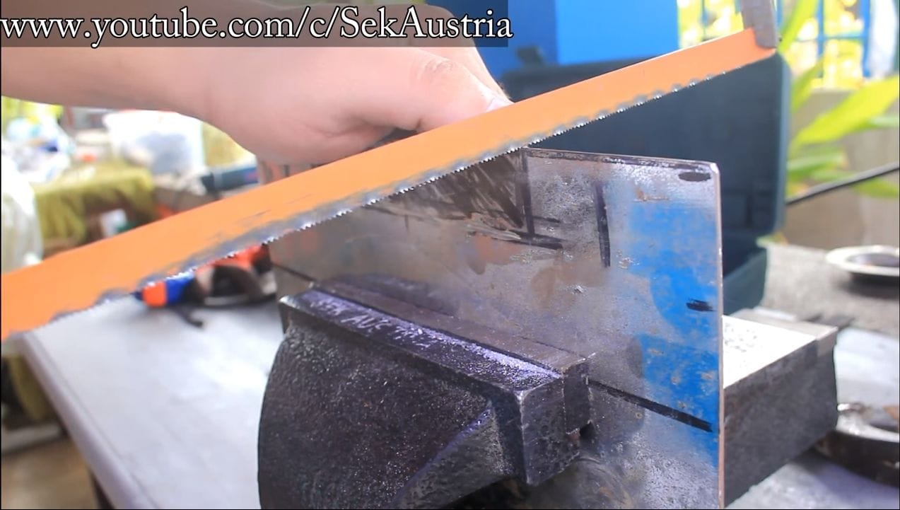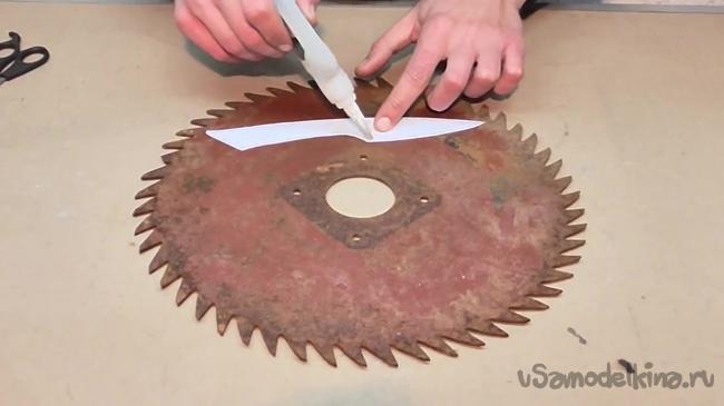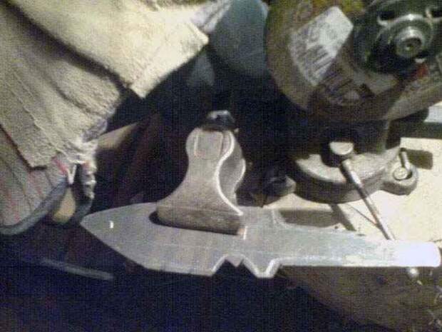 В мастерской работы пошли по заранее намеченному плану. В качестве материала для клинка была выбрана старая добрая механическая пила из быстрореза. Почему?