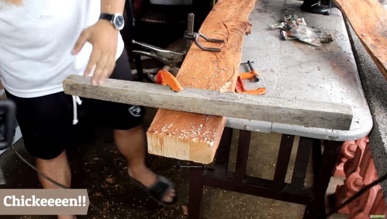 В случае с ручной пилой достаточно найти одну точку опоры, например, прижав один конец дерева к столу, а второй конец оставив свободным. Во время распиливания он просто отпадёт.Ошибка № 2: