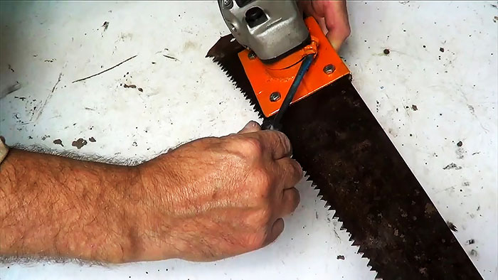 - Напильник следует держать таким образом, чтобы он слегка выступал над зубьями.