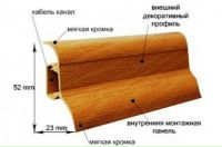 - Если в плинтус необходимо уложить кабель, то это нужно сделать перед тем, как надевать декоративную заглушку.