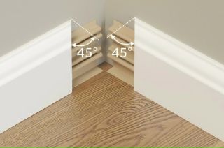 Всегда устанавливайте скошенные внешние углы попарно, чтобы вы могли точно подогнать их друг к другу, вместо того, чтобы прикреплять один и затем пытаться обрезать другой по размеру.
