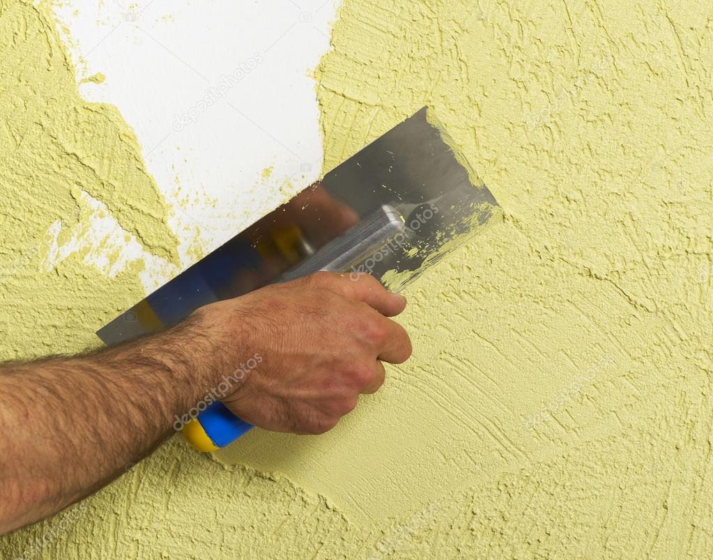 - Проверяют состояние декоративной основы поверхности. Все поврежденные участки удаляют с помощью малярного шпателя.