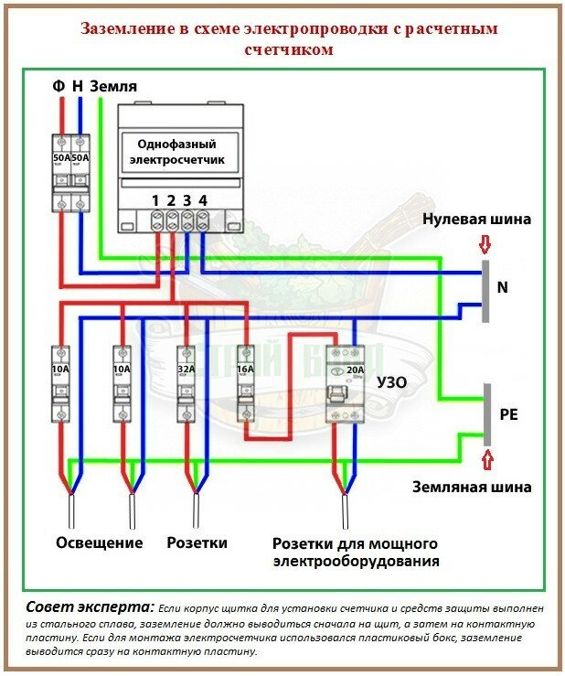 Заземляющий провод обычно выводится через отдельную колодку. Перед началом монтажа нового счетчика следует отключить вводный автомат. Если крепление старого счетчика не подходит, то предварительно с помощью дрели просверливаются новые монтажные отверстия.