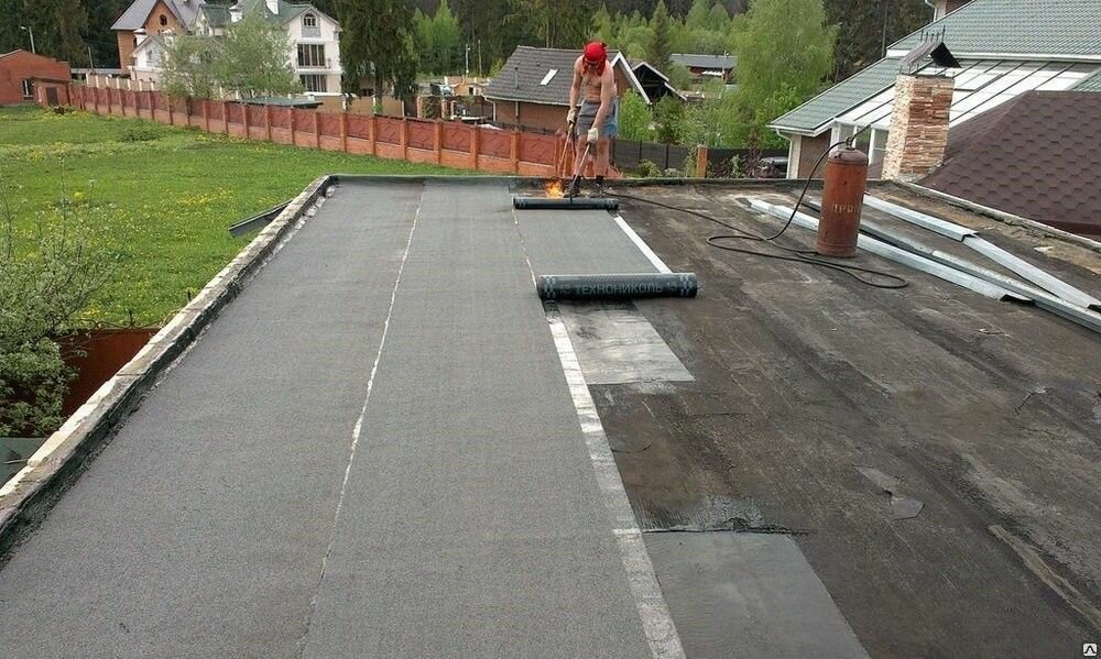 Перед тем как покрыть крышу, ее поверхность тщательно очищается и подготавливается. Устаревшее покрытие полностью снимается. Бетонная основа осматривается, все найденные трещины и выбоины замазываются раствором из песка и цемента. Поверхность покрывается праймером, имеющим полимерную основу или битумной мастикой. Этот слой усиливает сцепление укладываемого стеклоизола и основания.