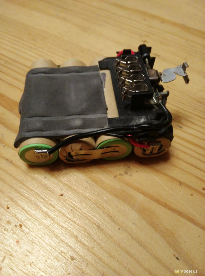 При сборке соблюдайте крайнюю осторожность, не закорачивайте банки, а также следите их полярностью. После соединения элементов батареи лучше их соединить между собой клеем.