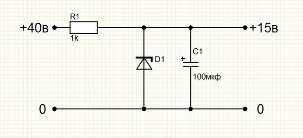Простейшая схема понижения постоянного напряжения