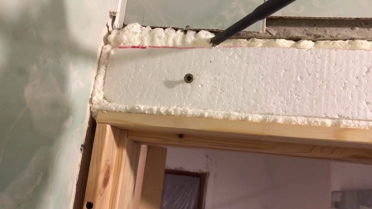 В данном варианте коробка держится только на одной пене. Это самый простой способ крепежа, но некоторые современные дверные конструкции не могут удерживаться только на одной пене.