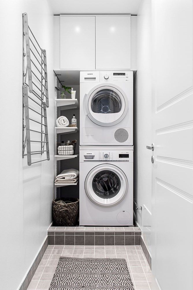 Установка сушилки и стиралки в колонну позволяет максимально сэкономить место - Горизонтально возле стиральной машины.