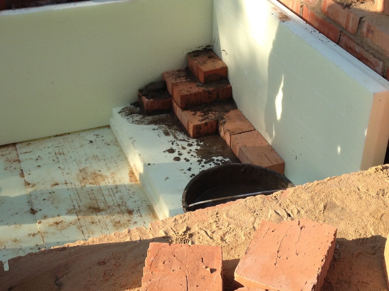 Далее плита приклеивается при помощи специального клея либо «грибков». Для большей надежности можно использовать одновременно оба варианта. При утеплении экструдированным пенополистиролом поверхность для нанесения клея должна быть шершавой. И в заключение все штукатуриться либо облицовывается при помощи кирпича.
