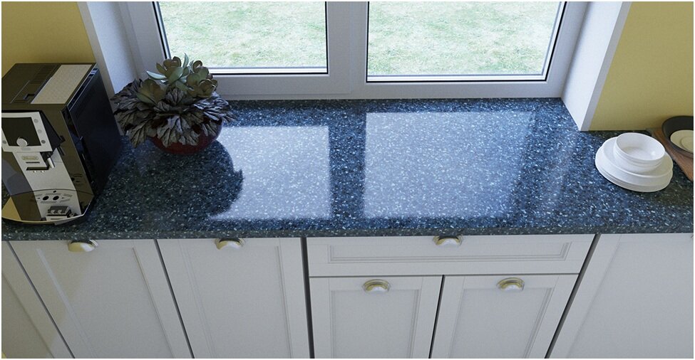Во-первых, гранитная столешница вместо подоконника будет громоздко смотреться на малогабаритной кухне. Во-вторых, столешница из камня имеет достаточно высокую стоимость. На мраморной поверхности могут остаться пятна от красящих веществ. В этом случае гранитные столешницы будут более выгодным вариантом. Стоит также учитывать, что камень не поддается реставрации, и для его установки нужна надежная опора. Важная особенность гранита состоит в том, что он от природы обладает высоким радиационным фоном, поэтому при выборе материала обязательно следует убедиться, что в сертификате указан 1-й класс по активности радионуклидов. Только такой материал может использоваться при отделке жилых помещений.