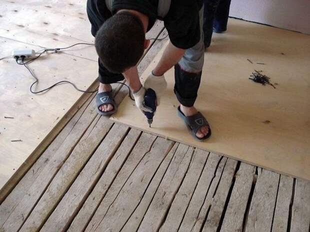 Данное занятие отнимает достаточно много времени и сил. Но, конечно, покрытие изначально должно быть уложено правильно, для того чтобы срок эксплуатации фанеры не сократился, а также для того, чтобы пол имел привлекательный внешний вид.