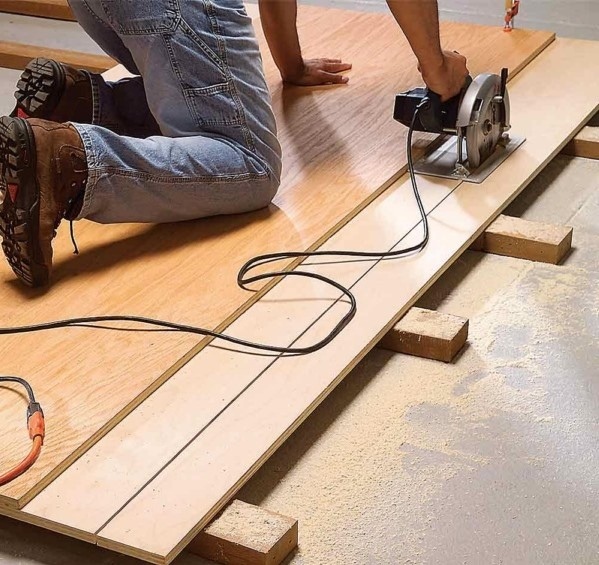 Для того, чтобы в процессе укладки и в последующем времени фанера на полу не изогнулась, ее лучше укладывать на бетонную стяжку.