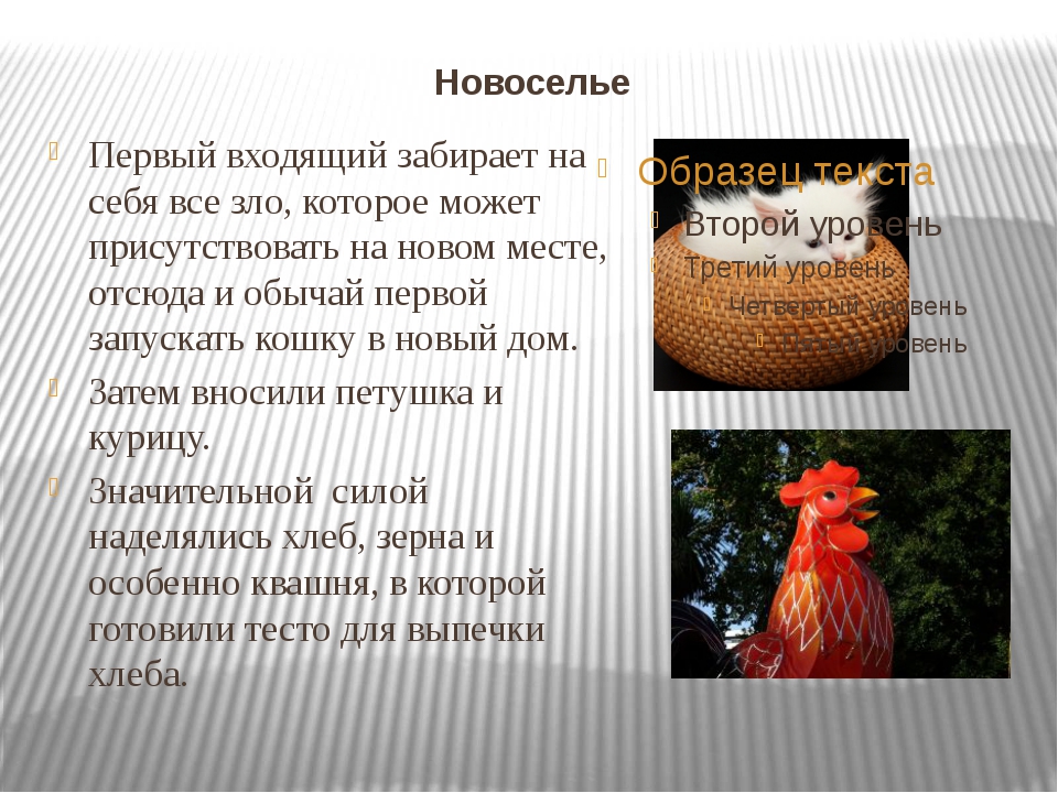 Хозяин домашний, приходи на новое место, будет двор богатый, житье знатное, задабривание частое.