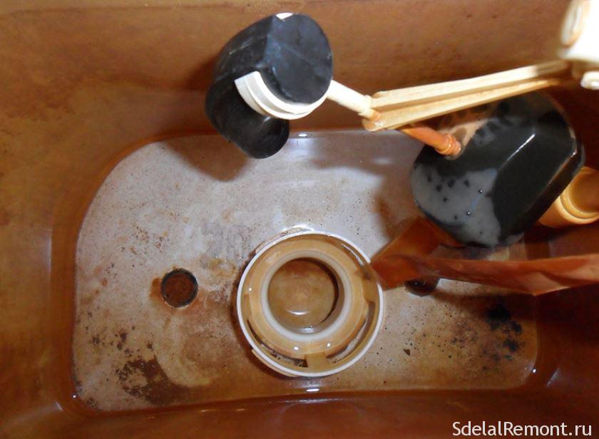 В сочетании конденсационная и коррозионная жидкости составляют единое целое из соединительных пластин. Иногда при чистке унитаза из-под бачка выходят хлопья ржавчины. Пусть это будет предупредительным знаком.