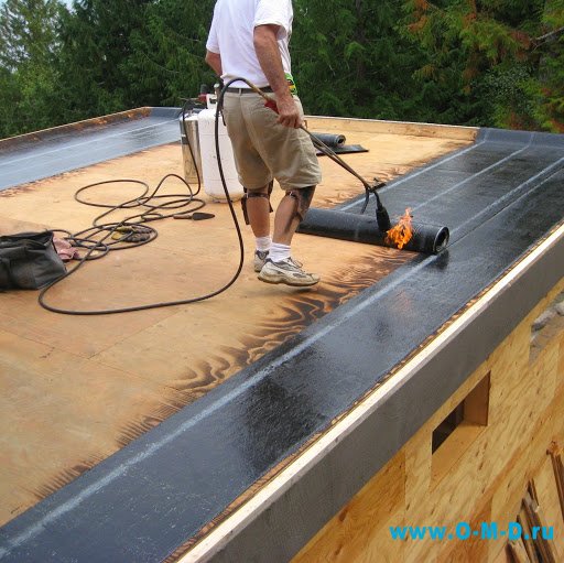 Это оптимальный выбор, чтобы покрыть крышу гаража. Всю работу можно проделать самостоятельно и за небольшой срок. Первоначально крыша нуждается в очистке и подготовке. На чистую поверхность наносится слой битумной мастики. Рулон стеколизола прогревается пропановой горелкой и прижимается к основанию. Для прочности прокатывается железным катком. Работа на небольшой и ровной крыше гаража не отнимет много времени.