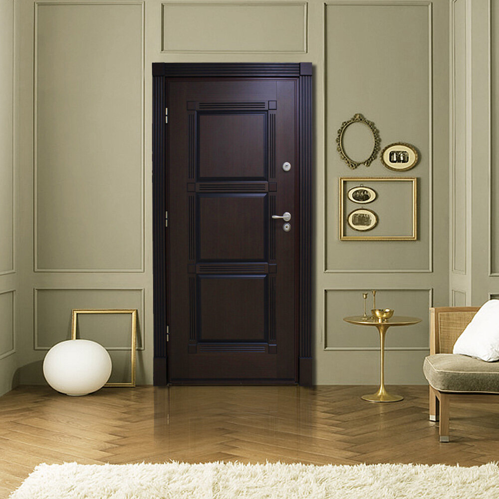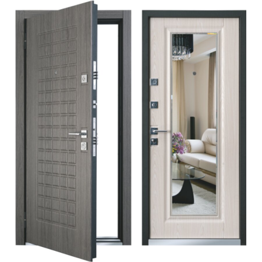 - По поводу дизайна нужно сказать отдельно. Лучше всего выбирать сдержанную по цвету, особо не выделяющуюся внешнюю панель двери, так как взломщики обычно в первую очередь обращают внимание именно на нее, определяя благосостояние владельцев квартиры.