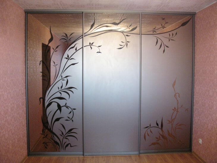 Роспись по стеклу, как и его полное окрашивание является хорошим вариантом улучшения интерьера в вашем доме. Если у вас зеркальный шкаф, то вы можете придумать роспись по стеклу, которая не помешает вам использовать плоскость по назначению.