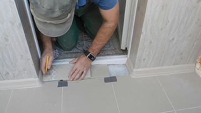 - нанесения плиточного клея 2 — 3 мм и фиксирования плитки — клей нужно наносить равномерно, чтобы не образовались воздушные пустоты.