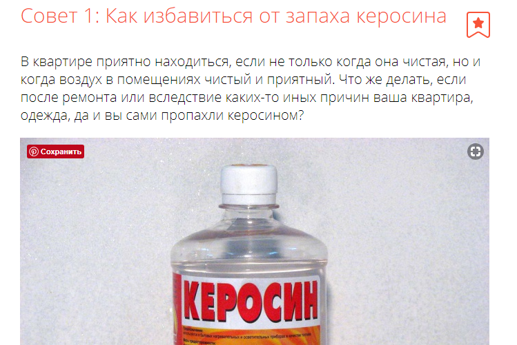 Попадая на одежду, керосин оставляет стойкий запах. Вещество летучее. Со временем запах исчезает сам. Но иногда вывести запах пахучего углеводорода с одежды нужно быстро. За годы существования вещества люди нашли много способов, как избавиться от его запаха.