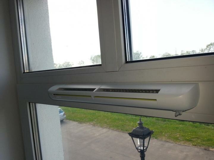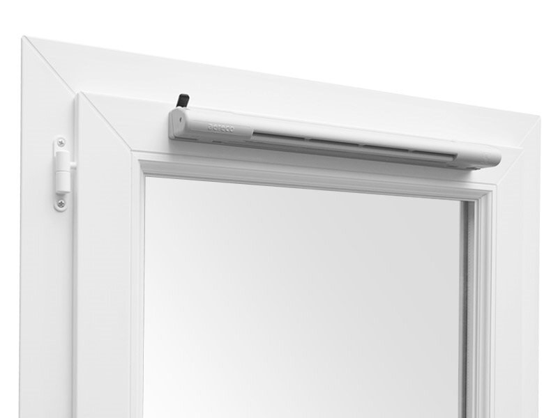 С 1983-ого года французская фирма «АЭРЭКО» (AERECO) выпускает уникальную систему вентиляции, которая предлагает именно автоматические приточные устройства для установки на пластиковые окна. Приточные устройства «АЭРЭКО» моделей ЕММ и ЕНА могут работать и автономно без вытяжных решеток (при этом несколько снижается эффективность работы системы в плане энергосбережения). Они малогабаритные, не занимают световой проем, т.к. монтируются на сквозном отверстии на раму окна снаружи и створку изнутри, и, самое главное, даже при полном открывании не ухудшают щумозащитные свойства окна, даже при полном открытии индекс гашения транспортного шума составляет величину от 33 до 42 Дб(А) в зависимости от исполнения (само окно из ПВХ имеет 30-35 Дб(А) в закрытом состоянии). Установить их можно на окно из любых материалов, как в процессе их изготовления в цеху, так и в обжитой квартире без демонтажа и замены стеклопакета. Установка их в верхней части окна позволяет направить струю внешнего воздуха под потолок, не вызывая сквозняков в зоне нахождения людей.