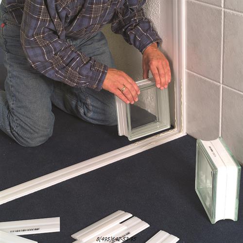 В профили обязательно вкладывается амортизирующий материал толщиной не менее 1 см. При укладке стеклоблоков необходимо точно расчитать размеры дверного проёма. Профили крепятся к дверной коробке предварительно.